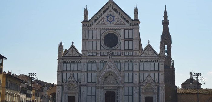 聖十字大教堂裡有許多名人的陵墓,像但丁,米開朗基羅,伽利略等。復活節當天教堂不開放,我們沒能進去參觀,便在教堂前面的廣場上拍了幾張到此一遊的照片,總算是看到了張同學心中惦記已久的聖十字大教堂。